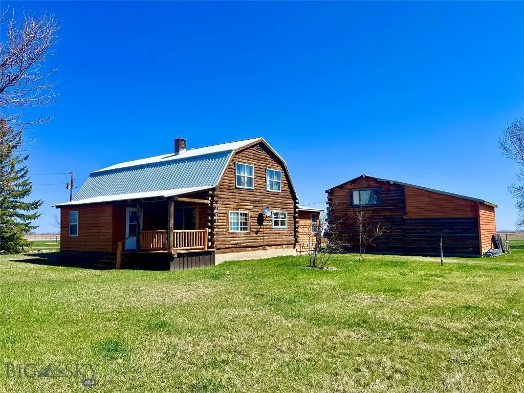 A log-style residence sits on the peaceful plains of central Montana, where they converge with the rugged Rocky Mountain Front. This immaculate home offers breathtaking views of the snowcapped mountains, visible from its porches and expansive windows. Boasting three bedrooms and three bathrooms, the cabin features an open main floor designed around a charming wood stove. Spanning 1,764 square feet on a 2-acre plot, the property includes a detached garage and a historic cabin with potential for renovation, ideal for use as a vacation rental or for historical preservation. Enclosed by a perimeter fence, the land invites residents to bring their horses, pets, or other animals, embracing a tranquil rural lifestyle in Montana. For those with an adventurous spirit, the Teton River flows just south of the property, while numerous reservoirs and lakes in proximity offer opportunities for fishing and boating. The majestic Bob Marshall Wilderness envelops the Rocky Mountain Front, providing a haven of unspoiled wilderness. Whether seeking a memorable hunting experience or scenic drives along gravel backroads, this property offers a gateway to a life of natural splendor and outdoor pursuits.