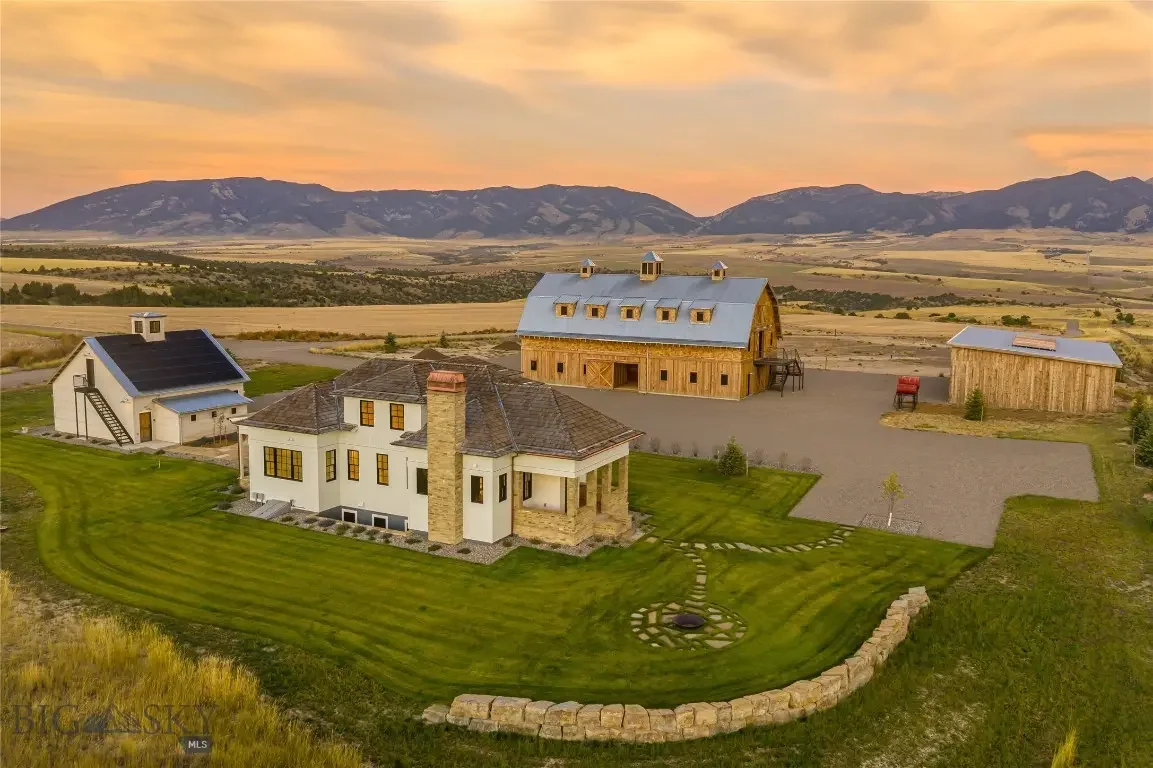 The SxS Ranch Estate encompasses 161± deeded acres northwest of Bozeman, Montana, with breathtaking views of the Tobacco Root, Bridger, Gallatin, and Madison Mountain ranges. This property is in the private SxS Ranch Reserve and includes a shared recreational interest in 971± total acres. About 1.4 miles of Dry Creek meanders through the east side of the private reserve, providing shared access to exceptional trout-filled water. Much of the property is dedicated to wildlife habitat for pheasants, sharp-tailed grouse, Hungarian partridge, whitetail deer, mule deer, and elk. The SxS Ranch Reserve offers parcels ranging from 68± to 188± acres, each with a thoughtfully placed homesite, creating a landscape of wide-open spaces and breathtaking vistas. Designed by Faure Halvorsen Architects, the four-bedroom, four-bathroom home features traditional architecture, modern technology, and high-end finishes. The centerpiece of the property is the strikingly finished iconic Western barn, while a large equipment shed allows for extra storage. A five-acre building envelope provides opportunities for constructing, discretely sited, another residence. The SxS Ranch Estate will resonate deeply with the discerning buyer(s) who has/have an appreciation for the historical context of the Rocky Mountain West. This is an opportunity to truly own the Last of the Best.