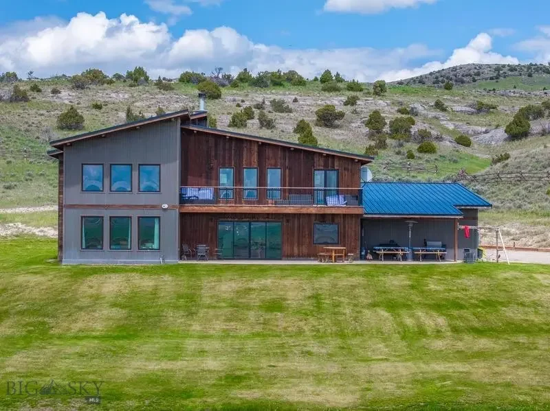 Modern Custom Home on 22+ acres with Stunning Mountain & Valley Views! This breathtaking modern-style custom home, built in 2019, blends sleek design with comfort. Step inside to a soaring vaulted ceiling, radiant concrete floors, and rich wood accents that create a desirable modern vibe throughout home. Expansive southern-facing windows capture panoramic valley and mountain views, filling the home with natural light. 3527 SF beautifully designed living space includes 5 bedrooms, 3 1/2 baths, and 1096 SF unfinished basement. Designer kitchen with concrete counters, island, wine cooler, under cabinet lighting, pantry and backsplash to ceiling makes this a cook's dream! Step right outside for summer BBQ's and al fresco dining with a view! Perfect for entertaining or casual meals. Quadfire wood stove and stacked stone fireplace with timber accents draws your attention to the contemporary open concept. The home office area on the main floor offers the ideal remote work set up with more inspiring views! Vaulted living area with loft-style architecture seamlessly connects lower and upper levels. Upstairs includes a sizeable master en suite featuring a walk-in tiled shower with a steam unit for ultimate relaxation and separate soaking tub. The bedroom boasts stunning southern views, complemented by stylish wood accent walls that add warmth and character to the space. Upper bonus room/living area has access to a private deck—perfect for enjoying the fresh air with your morning coffee! The two additional upstairs bedrooms have their own full bathroom. Situated on 22+ acres, home offers end-of-the-road privacy and fenced land. Built into the hillside for added seclusion. Located in coveted Gallatin River Ranch neighborhood with private its access to 2 1/2 miles Gallatin River, boat launch in Picnic pavilion park and 640 acres state land. Don't miss out—schedule a showing today!