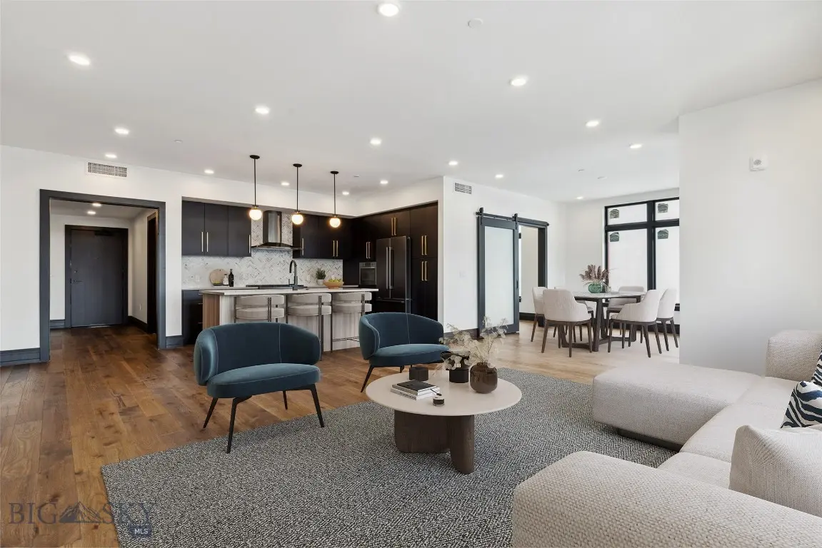 The Henry, a six-story luxury condominium building in Downtown Bozeman, #202 has a bright and airy feel to it. Sitting on 1,886 SF with two bedrooms, plus den, two and a half bathrooms, and a 122+- SF heated balcony, this unit has it all. With engineered oak hardwood floors, wool carpeting, quartz countertops and Bosch appliances to go with high-end fixtures and tons of natural light, this condo is a ready-made luxury offering in the heart of the Rocky Mountains’ coolest town. And it doesn’t stop there - The Henry building has amenities that make it more than just a residence: a ground floor fitness center, a private, landscaped courtyard and climate-controlled, secure underground parking. Just three blocks from Main Street, twenty-five minutes to Bridger Bowl and forty-five minutes to Big Sky Resort, you'll have easy access to the vibrant downtown scene, outdoor recreational activities, and Montana's stunning natural landscapes.