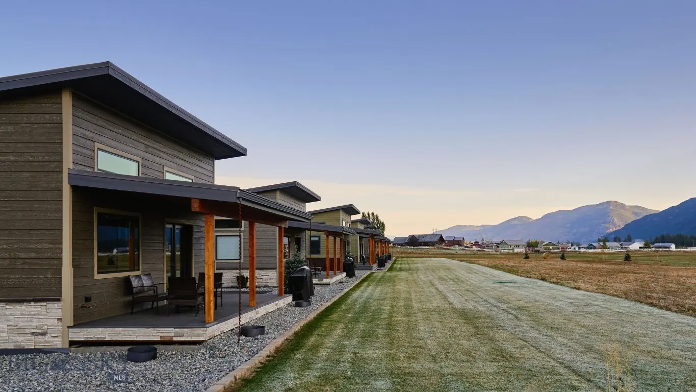 Columbia Mountain View Cabins- Located only a 20-minute drive from the west entrance to Glacier National Park, six stylish quality constructed cabins are offered turnkey. Four of the cabins are 840 sq ft with 2 queen bedrooms, each with its own en-suite bathroom & 2 cabins are 1 bedroom with a full bath. The cabins feature open living & kitchen areas boasting high ceilings, a cozy gas fireplace & sliding glass doors leading to a front porch with stunning Swan Mountain views. Additionally, the cabins have modern, high-quality finishes including stainless steel appliances & luxury vinyl plank flooring throughout. Each unit is equipped with an efficient heat pump system for both heating & cooling. Enjoy the beautiful mountain views from the covered porches. The property includes green space with a sprinkler & drip irrigation system, plus a detached 32x42 garage/ shop. Short-term rental bookings have begun to be placed. The 21 acres is surrounded by farmland & has plenty of space to consider adding more cabins, RV spaces or multi-generational family residences. With plenty of space & scenic views, this property could also be developed into a popular event or wedding venue. Don't miss this incredible opportunity! Located in the heart of Flathead Valley, just 5 minutes from Columbia Falls, the cabins are the perfect basecamp for Montana adventures—whether you’re skiing, hiking, fishing, or exploring local shops & artisan spots. The location is only 15 minutes from Glacier Airport, 20 minutes to Whitefish, 20 minutes to Kalispell, 25 minutes to Bigfork, & Flathead Lake.