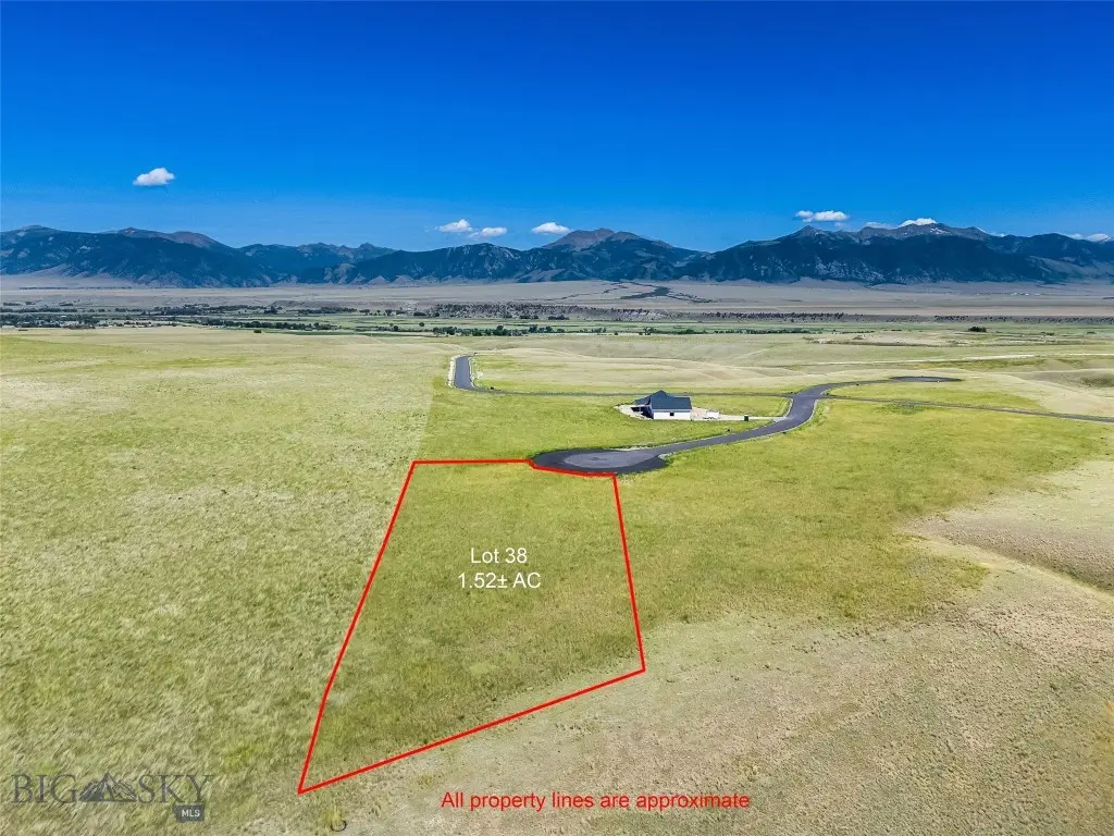 NEW subdivision in Ennis! Lot 38 is 1.52 +/- acres. There are 55 lots total between 1+/- to 2+/- acres. The entire subdivision is 165+/- acres so lots of open space to watch the wildlife! Paved roads throughout & power & fiber to each lot. Approximately 3 miles to downtown Ennis. Views in all directions! Wells are 200-350+/- feet & 12-30+/- GPM. Some photos are of the general subdivision. The licensed MT listing agent has an ownership interest in the property & can only represent the Seller. This property has covenants, annual HOA dues & bylaws.
