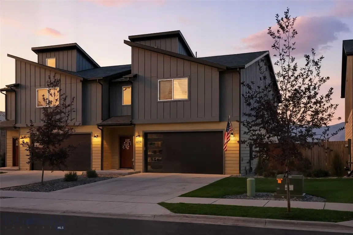 Discover your dream home in this beautifully crafted 3-bedroom, 2.5-bathroom townhouse, built in 2023 and offering over 2,000 square feet of contemporary living space. Nestled on the west side of Belgrade, this home boasts breathtaking views of the Bridger Mountains, providing a serene backdrop to your everyday life. Step inside to a bright and airy interior, featuring light grays and whites that enhances the open, spacious feel of the home. The modern design is complemented by a spacious kitchen, complete with sleek stainless steel appliances and a stylish tiled backsplash, perfect for culinary enthusiasts and entertaining guests. Stay comfortable year-round with central air conditioning, ideal for those warm summer days. Outside, enjoy a lush, fenced backyard, perfect for relaxation or play, along with a convenient small storage shed on the side of the house for all your outdoor needs. This move-in-ready townhouse combines modern elegance with functional living, all in a prime location with stunning mountain views. Don’t miss the opportunity to make this beautiful home yours!