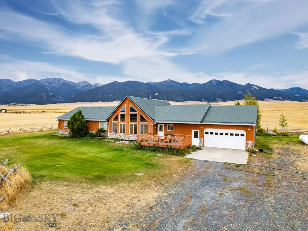 Welcome to your Montana dream property—where sweeping mountain views, open skies, and 45 acres of privacy create a lifestyle that feels worlds away yet minutes from town. This custom 3-bed, 2.5-bath home offers 2,858 sq ft of rustic elegance, blending craftsmanship, comfort, and freedom. 20-foot vaulted knotty-pine ceilings, hardwood finishes, and picture windows frame the Tobacco Root Mountains. The open-concept great room flows into a chef’s kitchen with stainless steel appliances, custom cabinetry, and an island made for gatherings. The primary suite includes deck access, a spa-style bath, and a walk-in closet. Outside, enjoy partially fenced and cross-fenced land, a shop, and room for horses or hobbies. Watch sunrise and sunset from the front deck or explore nearby trails and town. Convenient to Bozeman, Butte, and Helena—this is true Montana living.