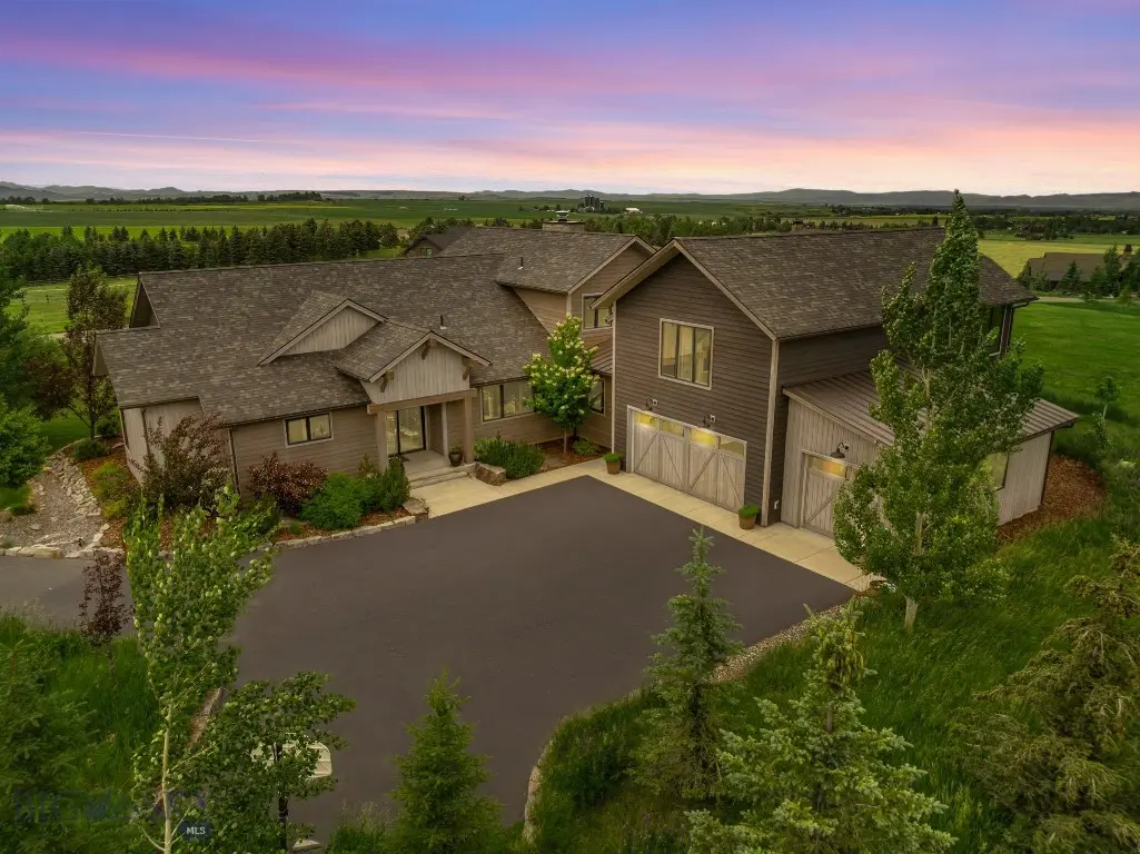Experience Montana luxury in this beautiful custom Locati-designed residence, perfectly positioned on one acre within the exclusive Green Hills Ranch subdivision. Enjoy sweeping views from the moment you enter the home through the striking glass front entry door. This stunning residence borders open space and overlooks conserved farmland showcasing impressive views throughout the home. Features include four bedrooms, each with an en-suite bathroom, a dedicated theater room, home office, powder room and an impressive five-car garage. Additional amenities include the spacious main floor primary suite with walk out patio, an underground dog fence, and surround sound throughout the home and covered patio. Both indoor and outdoor natural stone fireplaces create the perfect gathering spots, while custom finishes like reclaimed corral board ceilings and French oak flooring add to the charm. The home's thoughtful design maximizes the incredible views through the expansive windows. You'll love entertaining in the spacious gourmet kitchen featuring an oversized quartz island and high-end appliances. Custom finishes throughout create an atmosphere of refined elegance. The well-designed layout flows seamlessly from room to room, maximizing both functionality and style. Green Hills Ranch offers a unique Montana lifestyle with dedicated open space and trails. This community sits at the foothills of the Gallatin Range, nestled in a pastoral setting with rolling meadows and open fields. The desirable location provides easy access to outdoor recreation while maintaining close proximity to Bozeman's vibrant dining and shopping scene. This home perfectly combines luxury living with Montana's outdoor lifestyle, offering both privacy and convenience in one of the area's most desirable communities.