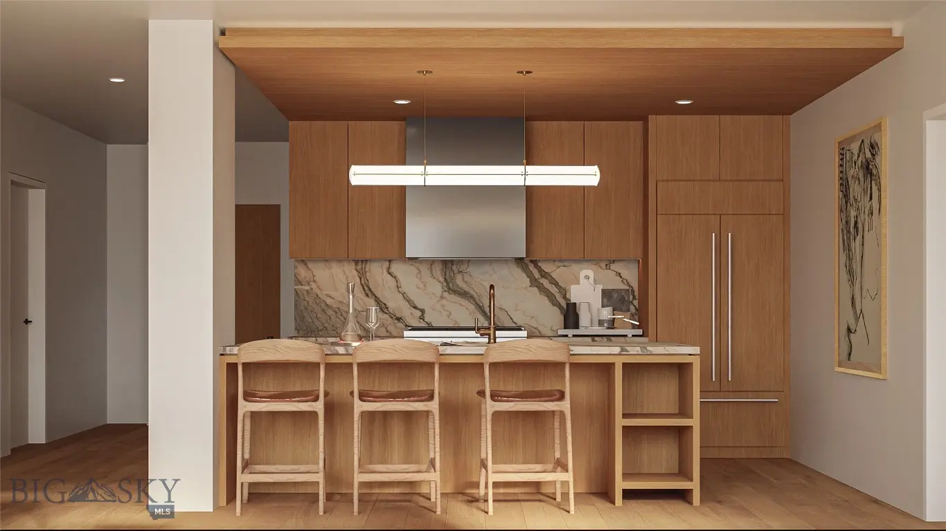 Introducing Bozeman Yards — Bozeman’s most exceptional new address and the highest standard of luxury construction available on the market. Perfectly positioned in the heart of the vibrant Mill Arts District on the Northeast side, Bozeman Yards offers an unrivaled living experience where world-class design, premium finishes, and curated amenities come together in a way that no other development in town can match. These architecturally striking condos feature elevated finishes inspired by Montana’s natural beauty, with oversized windows framing panoramic Bridger Mountain views - each interior space is matched with an equally appealing outdoor space designed for year-round enjoyment. Residents enjoy exclusive access to The Yards Club, a one-of-a-kind private spa and wellness retreat featuring a plunge pool, sauna, cold plunge, fitness studio, and owner’s lounge. With thoughtfully designed landscaping, nearby trail systems, and walkability to both downtown Bozeman and Story Mill Park, this is the most connected, design-forward, and amenity-rich living experience available. Reserved parking, private storage, and a community-focused design complete the vision—Bozeman Yards is truly defining a new standard of excellence. Bozeman Yards Unit 205 is a meticulously crafted 1-bedroom, 1-bath home featuring a versatile private den—ideal for a home office or guest accommodation. Buyers can choose from a selection of designer-curated finish packages to personalize their space. The open-concept layout maximizes both functionality and flow, creating an effortless living experience. The generous 133 SF south-facing terrace extends seamlessly from the living room, providing a private outdoor sanctuary to savor the panoramic views.
